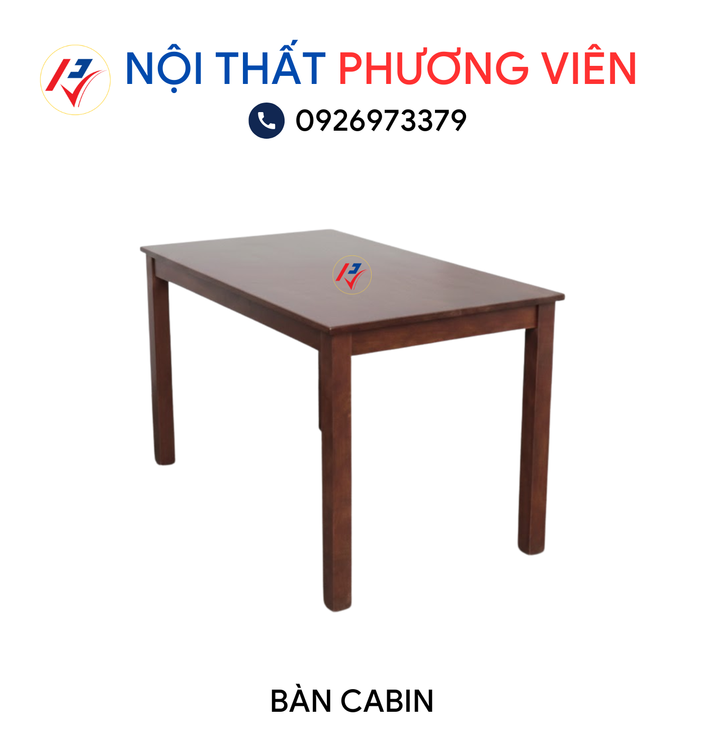 Bàn Cabin sở hữu thiết kế vuông vắn với mặt bàn rộng, phẳng và các cạnh được bo nhẹ, vừa gọn gàng, thanh thoát vừa giữ được sự chắc chắn vững vàng. Bốn chân bàn dày, thẳng, tạo thế đứng ổn định cho toàn bộ kết cấu.