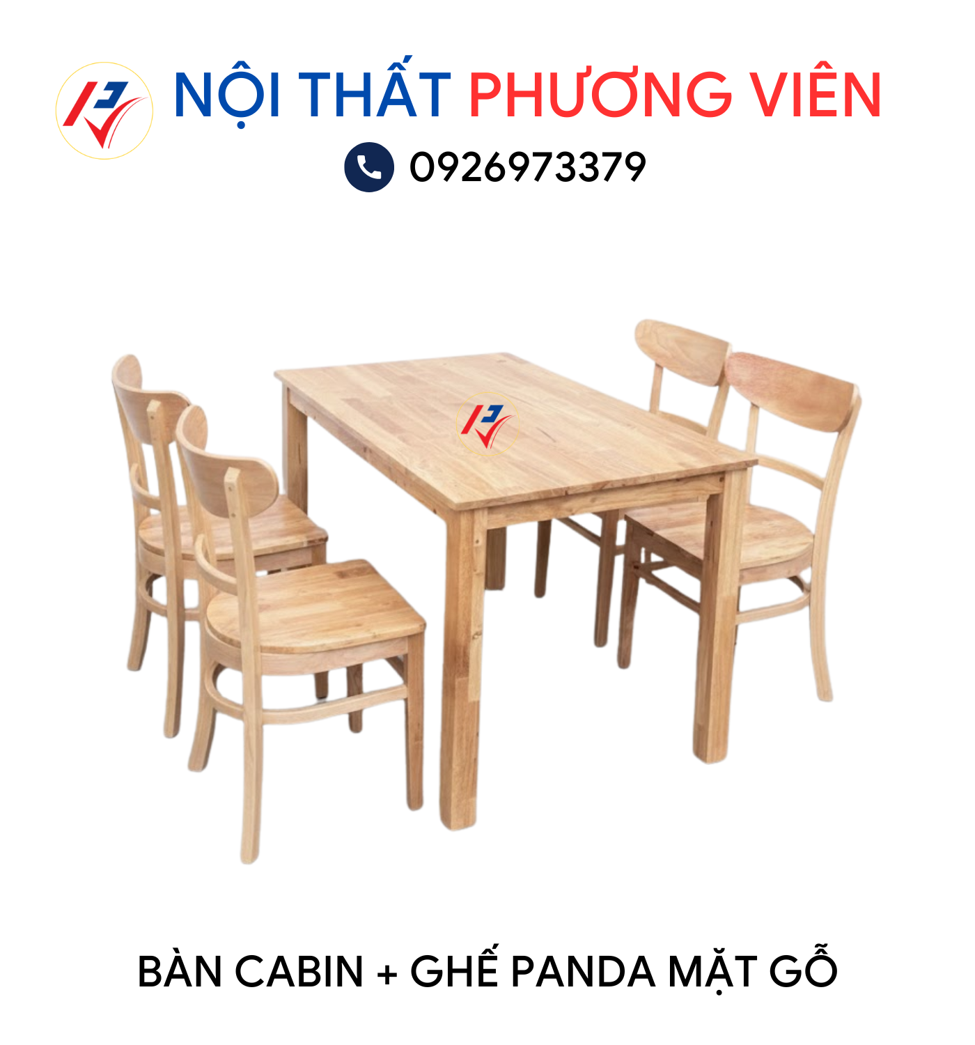 Bàn Cabin và ghế Panda mặt gỗ là một trong những sản phẩm bán chạy tại Nội Thất Phương Viên, nhờ thiết kế tối giản tinh tế, chất liệu gỗ cao su tự nhiên bền chắc và màu sắc hài hòa, phù hợp với nhiều phong cách nội thất. Bộ sản phẩm không chỉ đẹp mà còn mang lại cảm giác ấm áp, thân thiện và thoải mái khi sử dụng trong gia đình, quán ăn, quán cà phê hay không gian homestay.