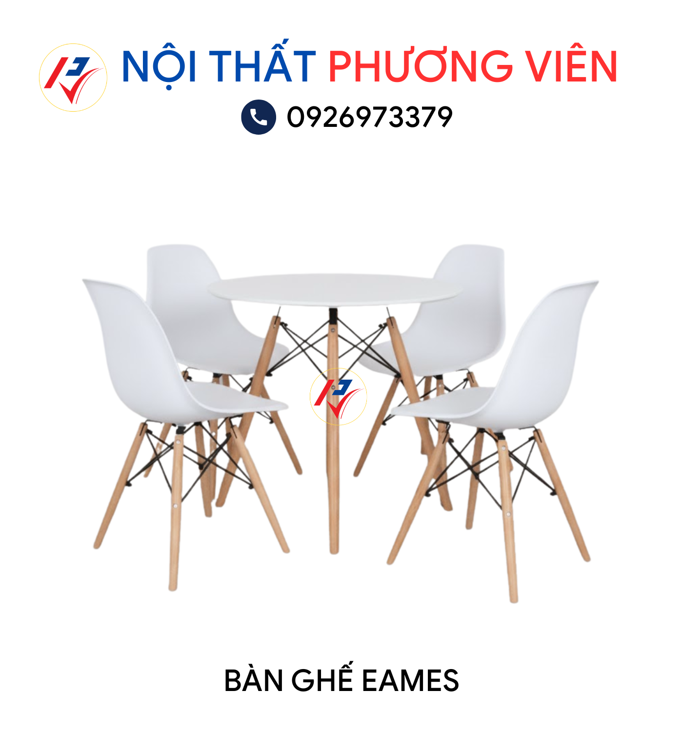 Chân bộ bàn ghế Eames được làm từ gỗ tự nhiên, tiện nhẵn bóng đẹp sáng bóng, kết nối các chân ghế với nhau là thanh sắt nhỏ sơn tĩnh điện cao cấp.