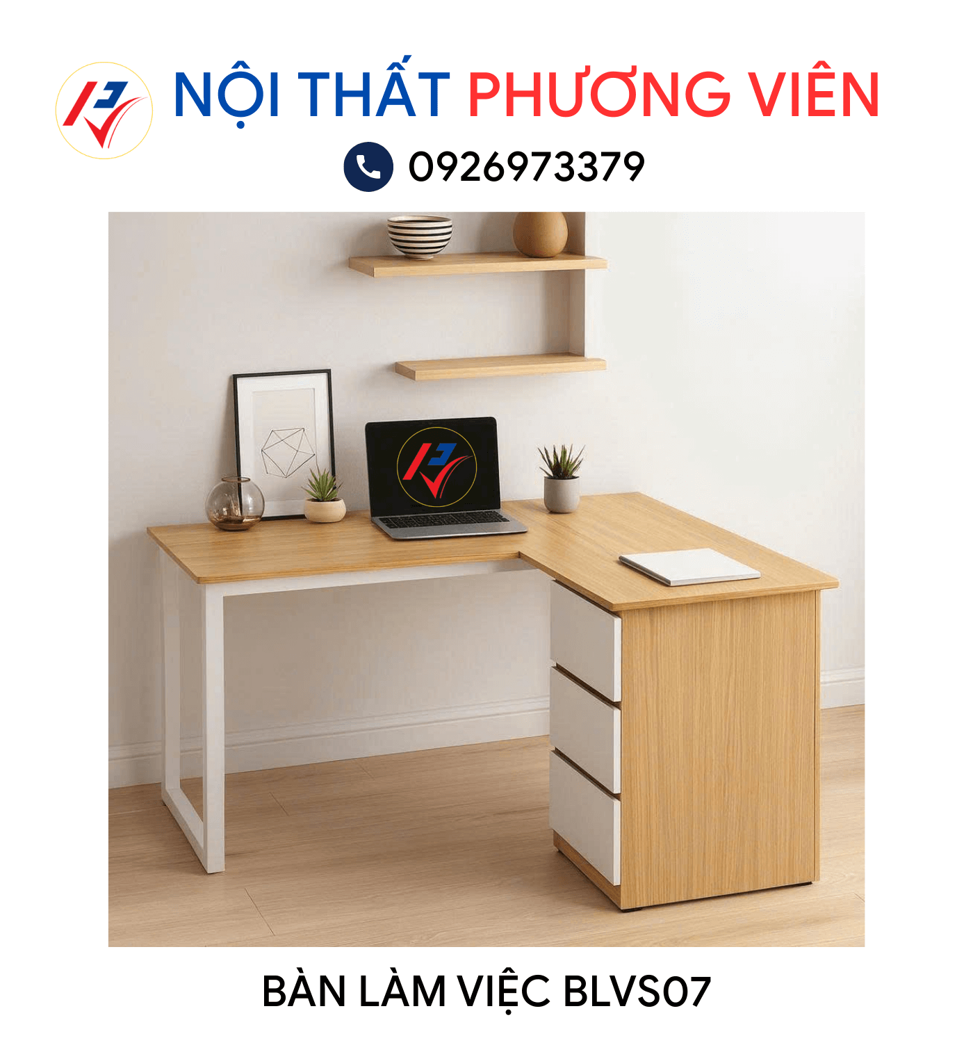 Nhờ thiết kế góc chữ L và hộc tủ lưu trữ đi kèm, bàn làm việc BLVS07 là giải pháp hoàn hảo để tối ưu hóa không gian làm việc trong các căn hộ nhỏ, phòng ngủ hoặc phòng làm việc tại nhà có diện tích khiêm tốn.