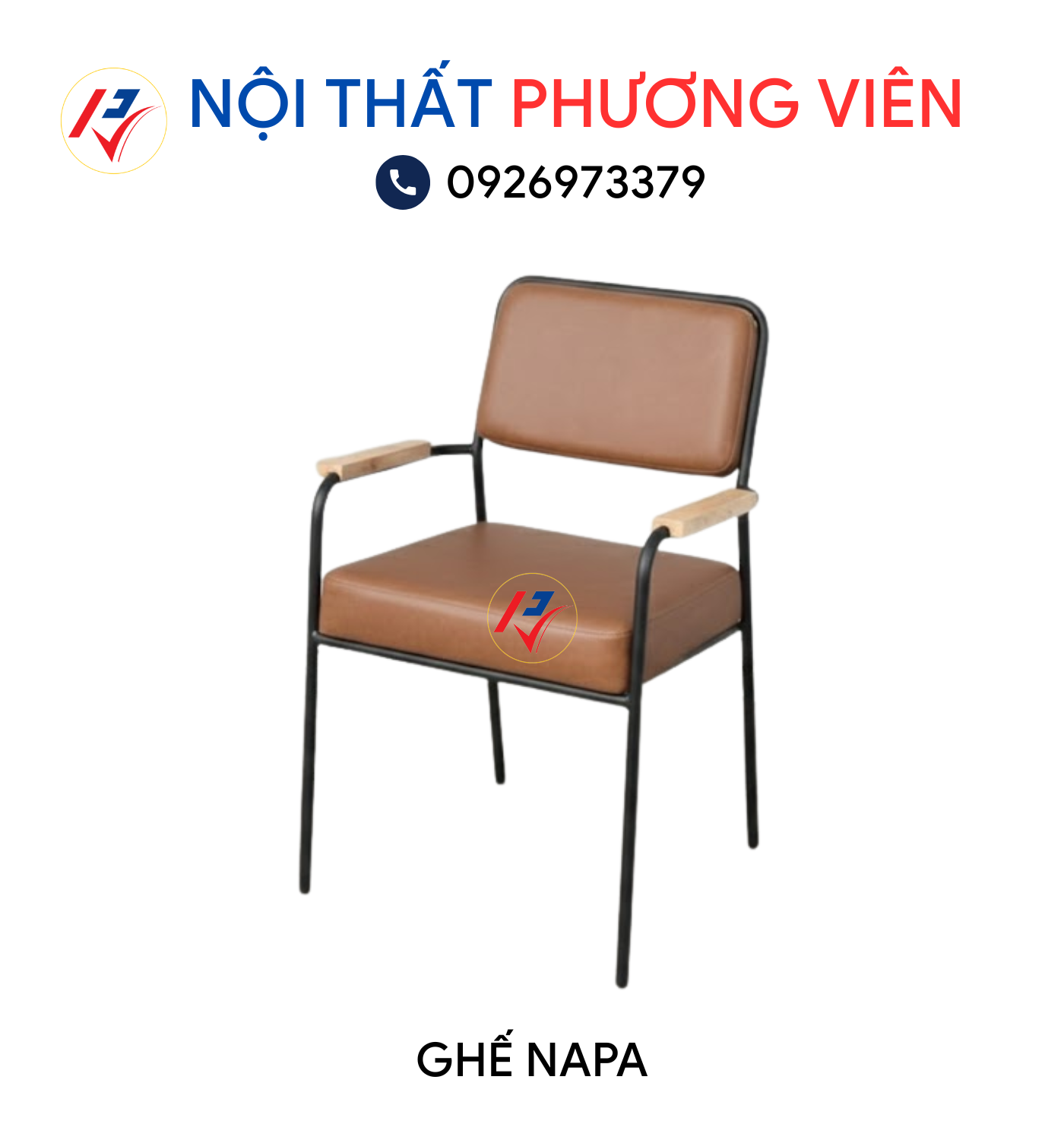 Kết hợp với bàn là dòng ghế Napa có thiết kế thanh lịch, khung sắt sơn tĩnh điện cứng cáp và lớp đệm simili dày mềm mại tạo sự thoải mái cho khách hàng ngồi lâu. Mặt tựa và đệm ghế đều được bọc simili tạo nên tổng thể sang trọng, êm ái. Phần tay ghế phối cùng gỗ cao su cho thấy có thể kết hợp ghế với nhiều loại bàn khác nhau một cách dễ dàng.