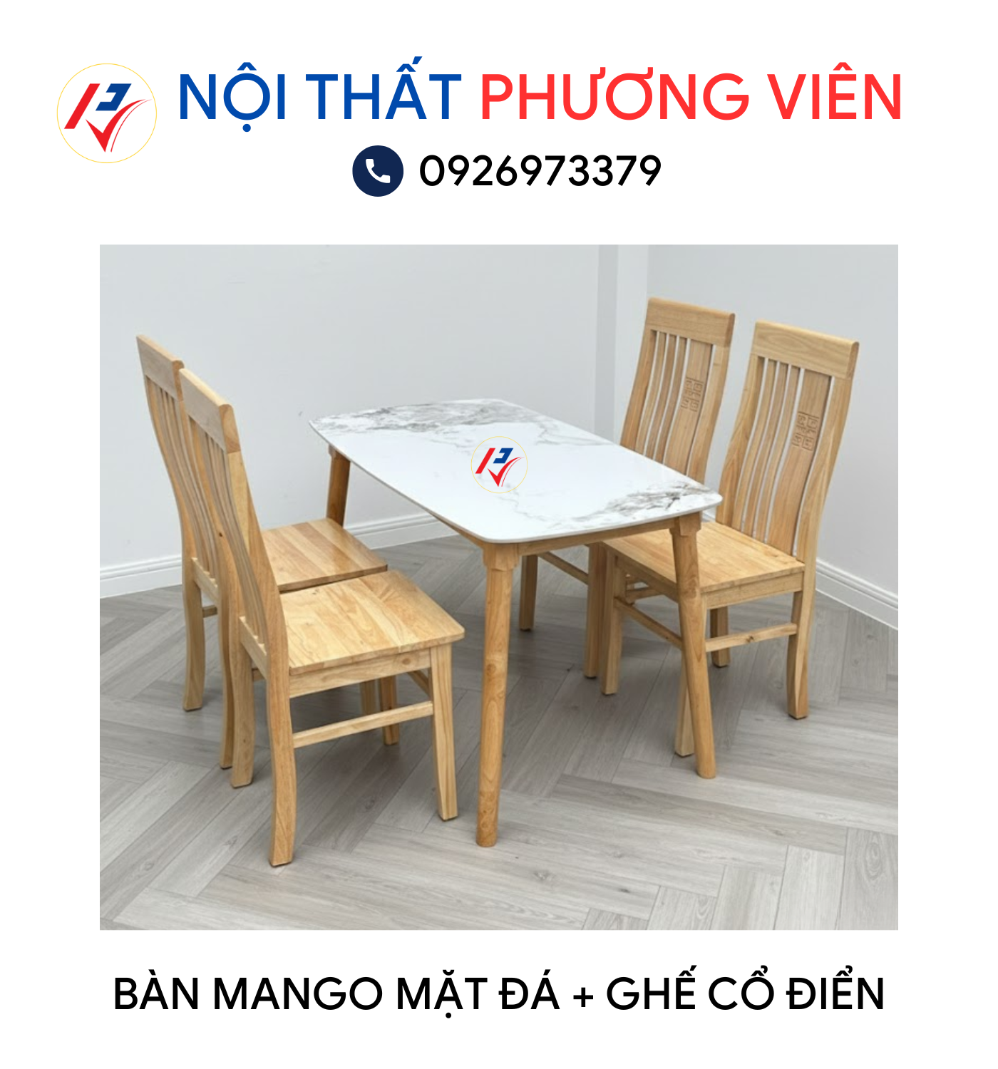 BỘ BÀN MANGO MẶT ĐÁ CERAMIC VÀ GHẾ CỔ ĐIỂN – SỰ KẾT HỢP HÀI HÒA GIỮA SỰ SANG TRỌNG VÀ BÊN BỈ