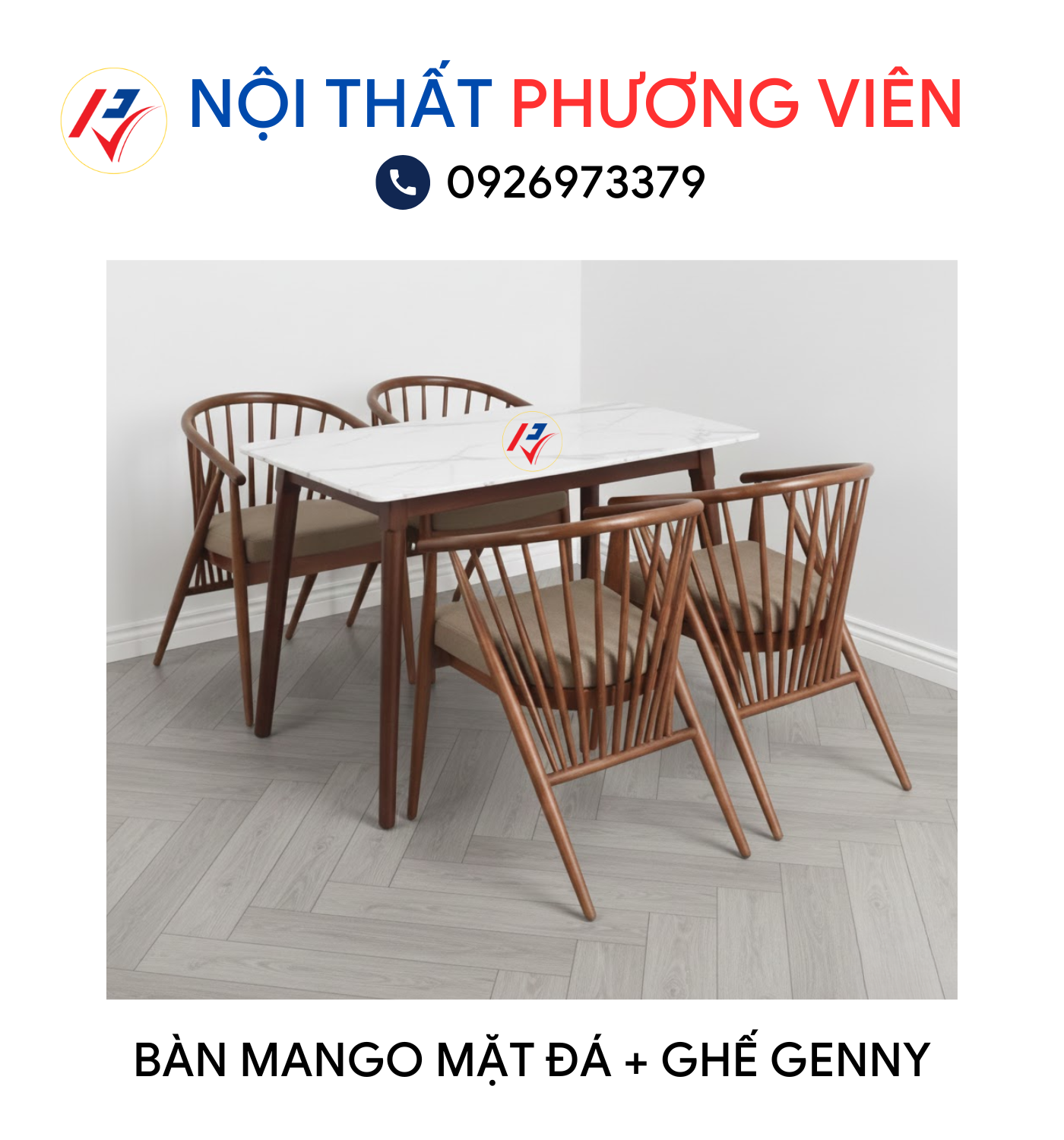 BÀN MANGO MẶT ĐÁ VÀ GHẾ GENNY – MẪU BÀN GHẾ ĂN HOT TREND 2025
