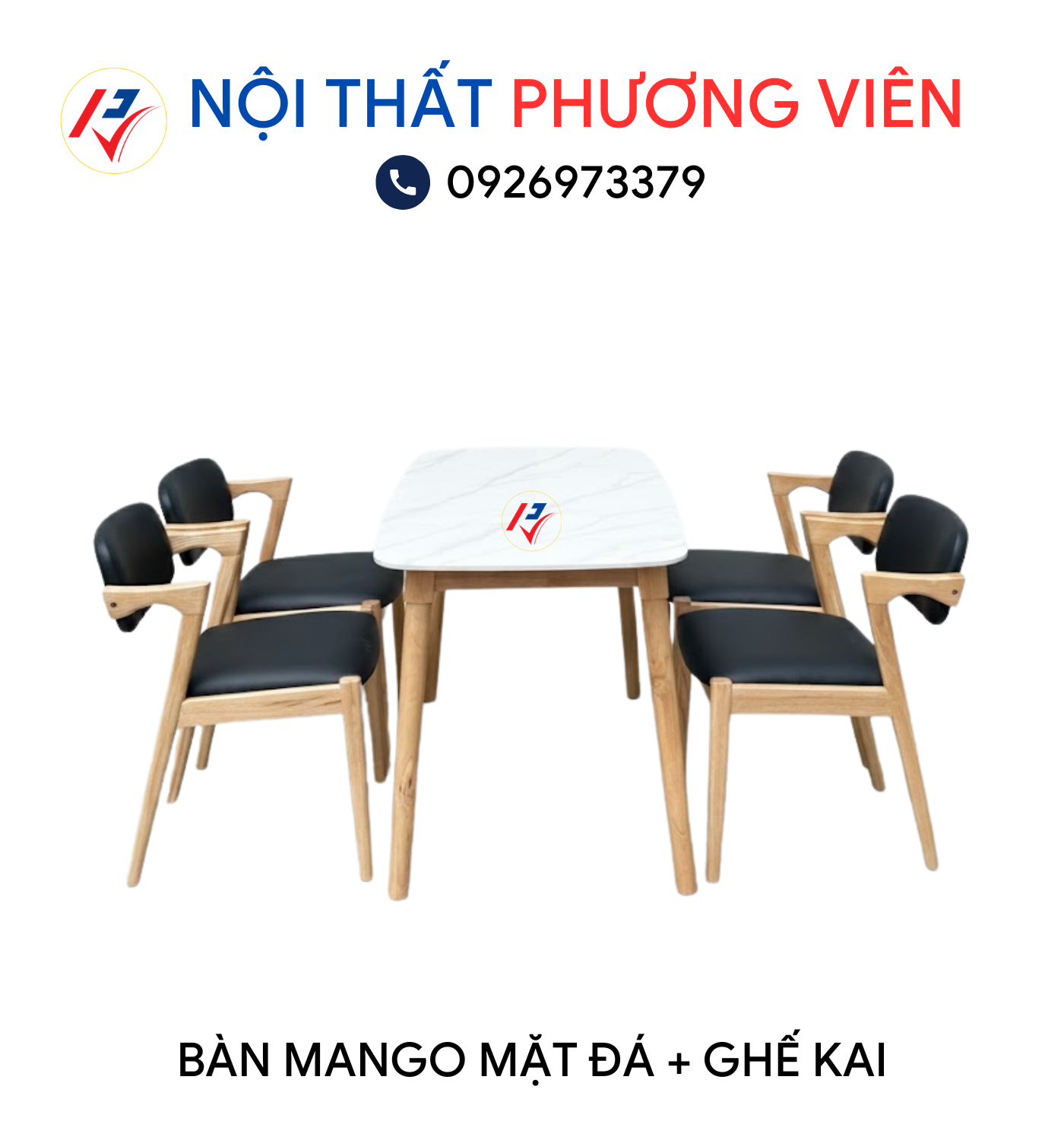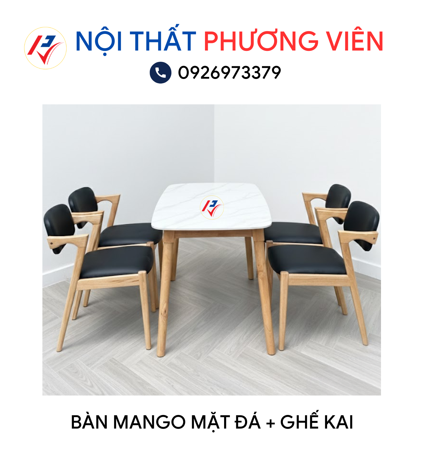 Giá thành: Bàn Mango mặt đá và ghế Kai có chi phí dễ tiếp cận nhưng vẫn đảm bảo tính thẩm mỹ và độ bền.