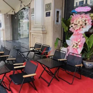 Khu vực ngoài trời cần linh hoạt – có thể xếp gọn khi đóng cửa, và dễ dàng bổ sung thêm ghế khi đông khách.