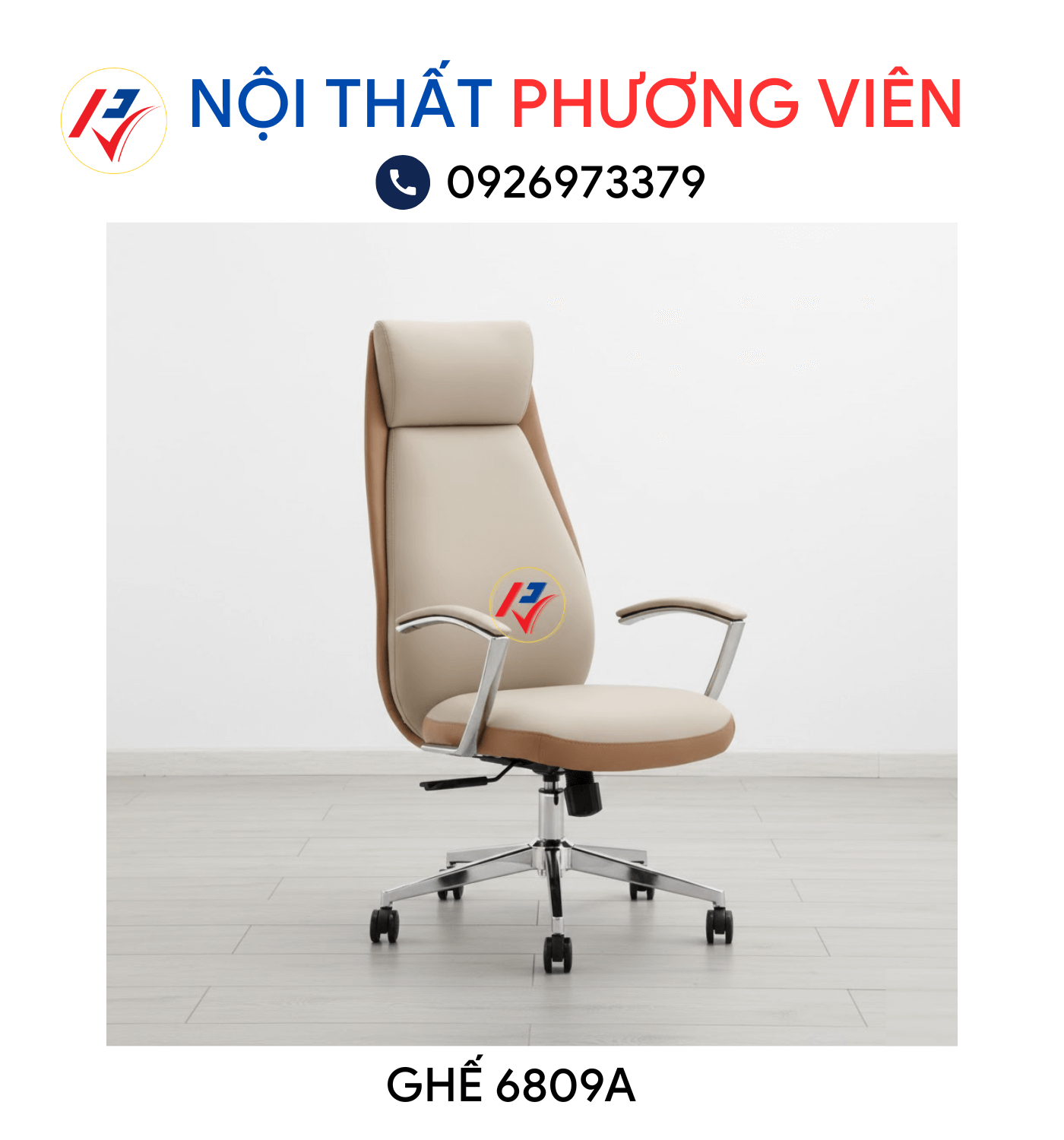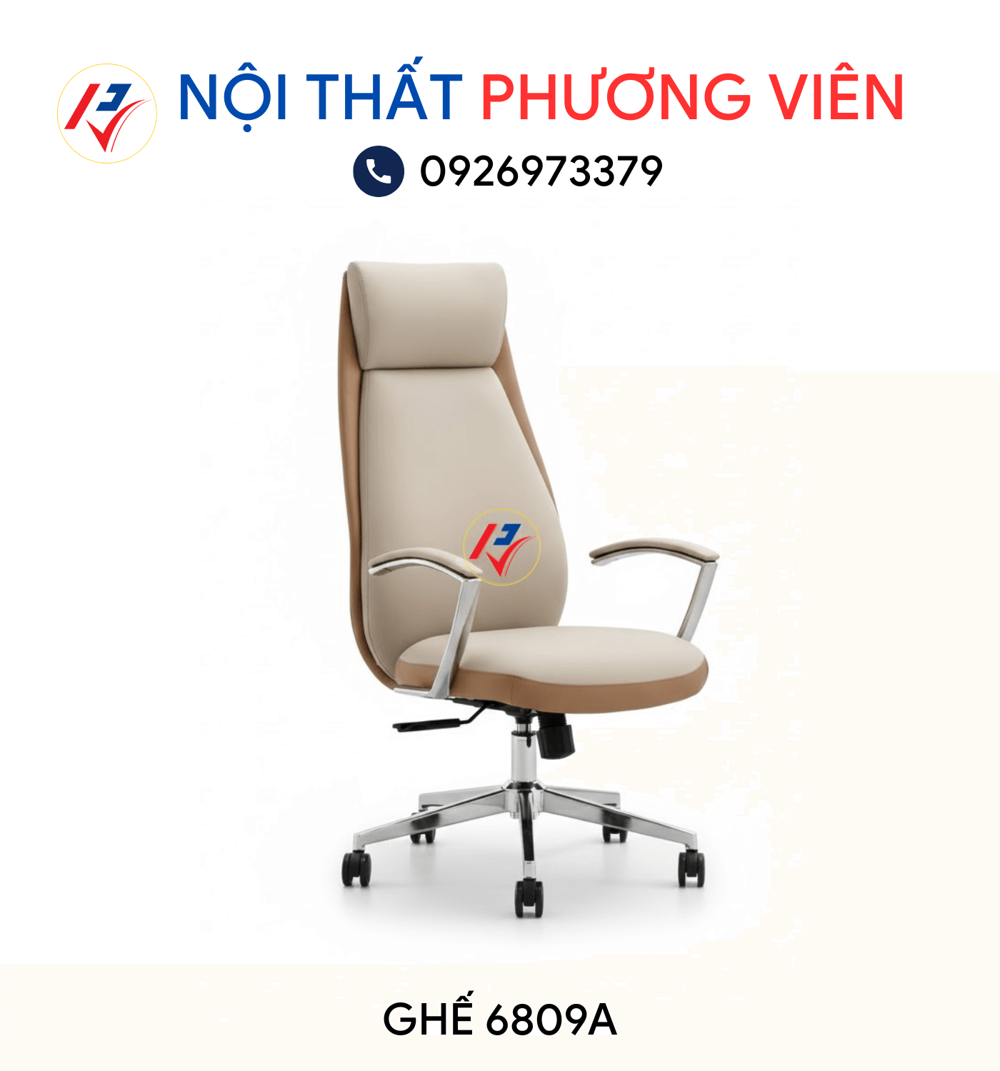 Ghế 6809A có màu kem và màu nâu dễ dàng kết hợp với nhiều phong cách nội thất.