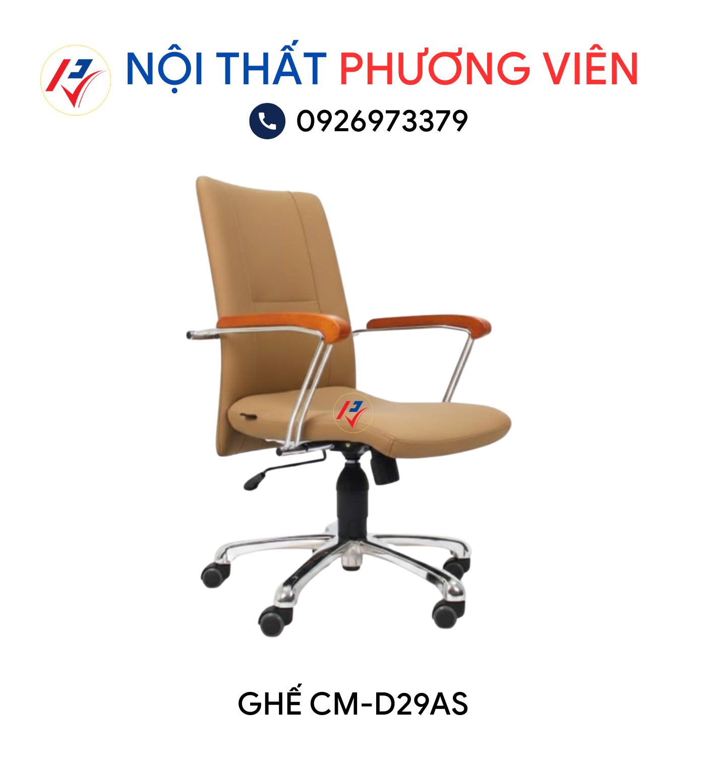 Ghế văn phòng CM-D29AS là sự kết hợp hài hòa giữa chất liệu cao cấp và thiết kế tinh tế. Nệm ngồi được bọc da PU, khung tay ghế chắc chắn bằng sắt mạ chrome ốp gỗ sang trọng, cùng phần chân xoay 5 cạnh bằng kim loại mang lại sự bền bỉ và linh hoạt trong quá trình sử dụng.