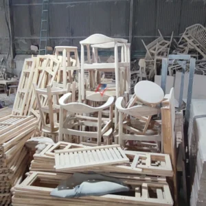 Chúng tôi làm bàn ghế ăn, bàn ghế cafe, kệ, ghế sắt – từ gỗ cao su, từ sắt, và từ cách phối hợp giữa chúng.