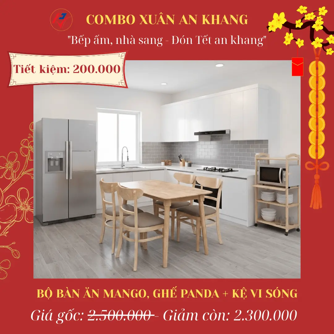 | 2 | Xuân An Khang | Bàn ăn Panda + Kệ vi sóng | ~~2.500.000đ~~ | ~2.300.000đ | 200.000đ |