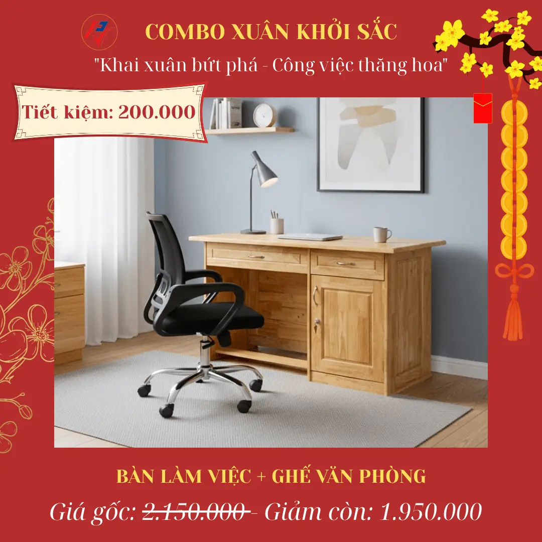 | 3 | Xuân Khởi Sắc | Bàn làm việc + Ghế văn phòng | ~~2.150.000đ~~ | 1.950.000đ | 200.000đ |