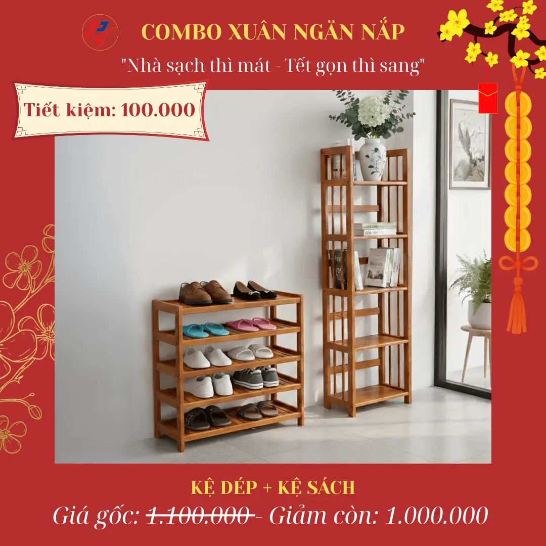 | 5 | Xuân Ngăn Nắp | Kệ dép + Kệ sách | ~~1.100.000đ~~ | 1.000.000đ | 100.000đ |